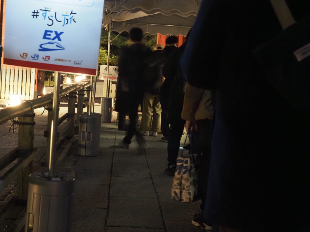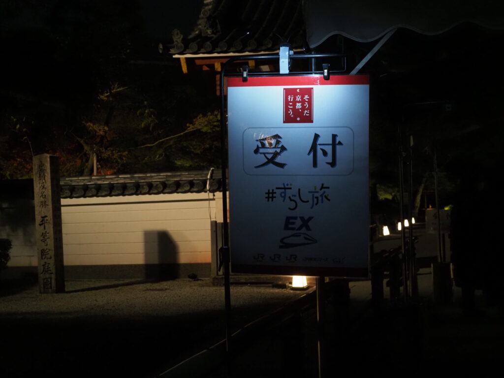 通常の平等院夜間特別拝観になると何時間も待つこともあります。でも旅行会社からの予約だとそんなに並ばなくていいです。