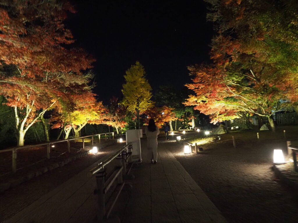 - ゆっくり夜の紅葉と平等院を見ることができる