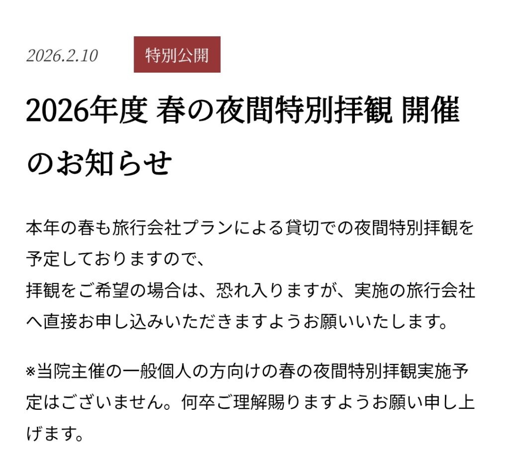 | 夜間特別拝観 | 2022年から秋から一般予約受付中 |