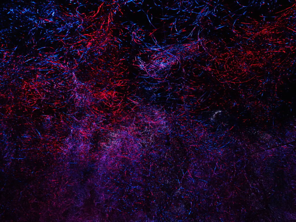 細く赤い光の線は、中心から放射状に無数に広がり、球体を形作る。光源は動かないが、無数の線はうごめき続ける。