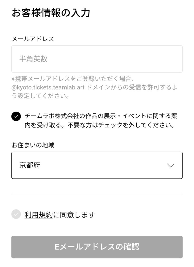 予約は、公式チームラボ京都のチケットサイトから簡単に行えます。