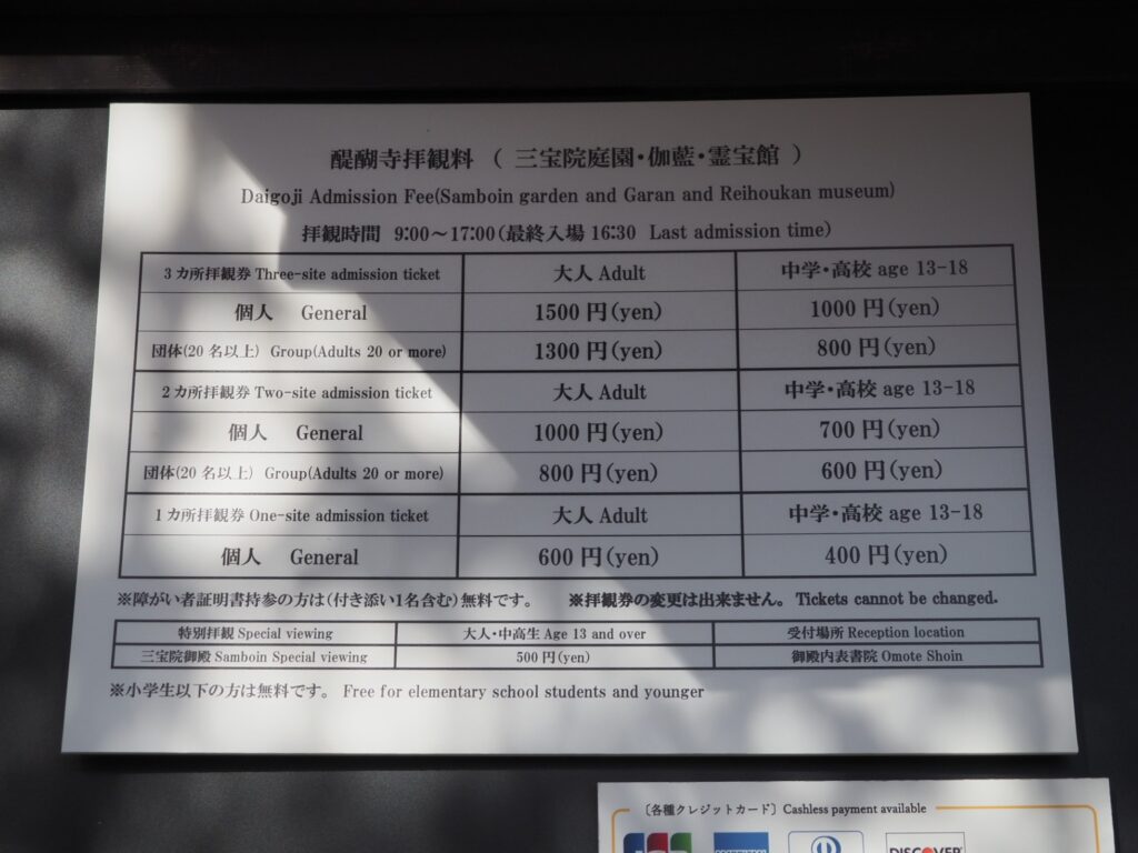 | 三宝院御前(割引なし) | 500円 | 500円 |