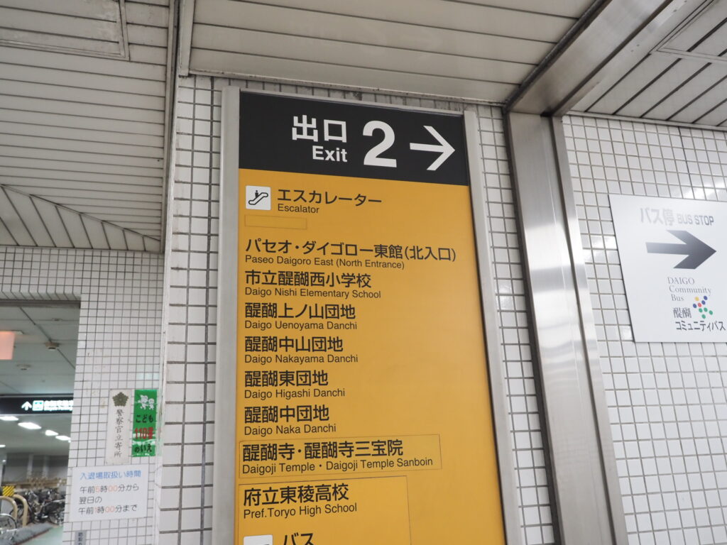 京都市営地下鉄東西線に乗り換え、約10分の「醍醐駅」で下車。