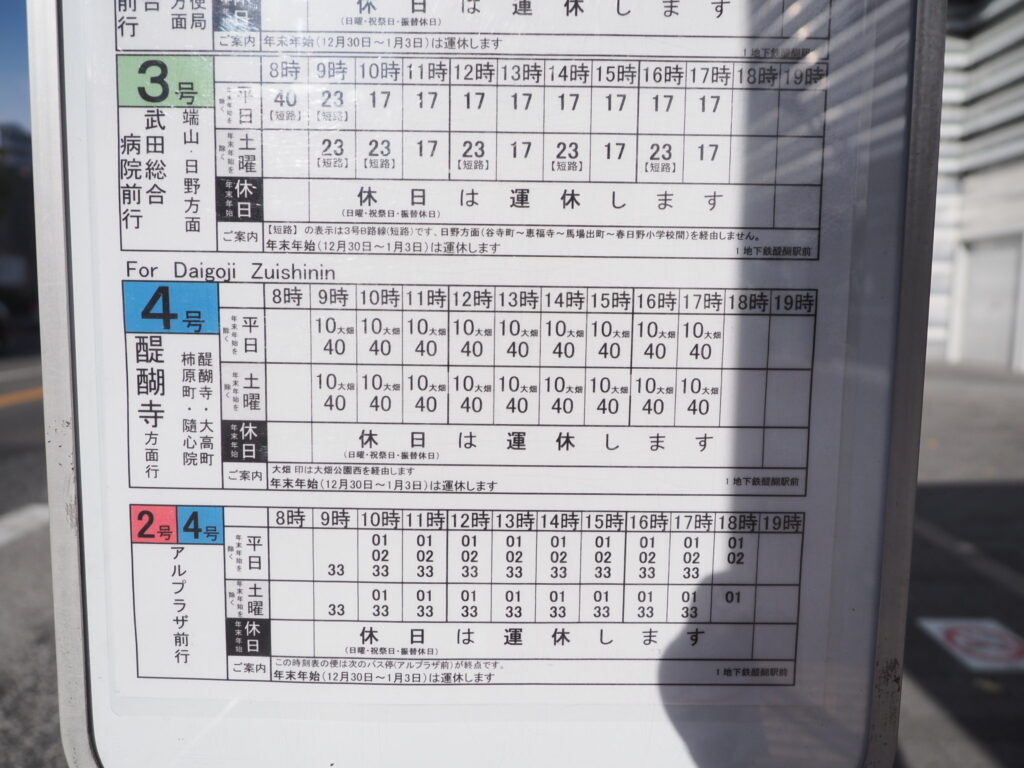 コミュニティーバスがありますが、祭日だったので運休してました。