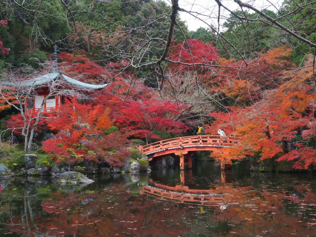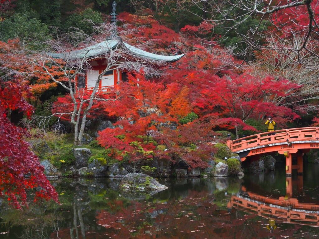 中でも、豊臣秀吉が設計した三宝院庭園はモミジと見事に調和した美しさで、訪れる人々の目を楽しませてくれます。秀吉は「醍醐の花見」のあと、秋の「醍醐のモミジ狩り」を楽しみにしていましたが、その年の夏に62歳の生涯を閉じました。醍醐寺の紅葉は、秀吉が後世の人々に残した形見かもしれません。