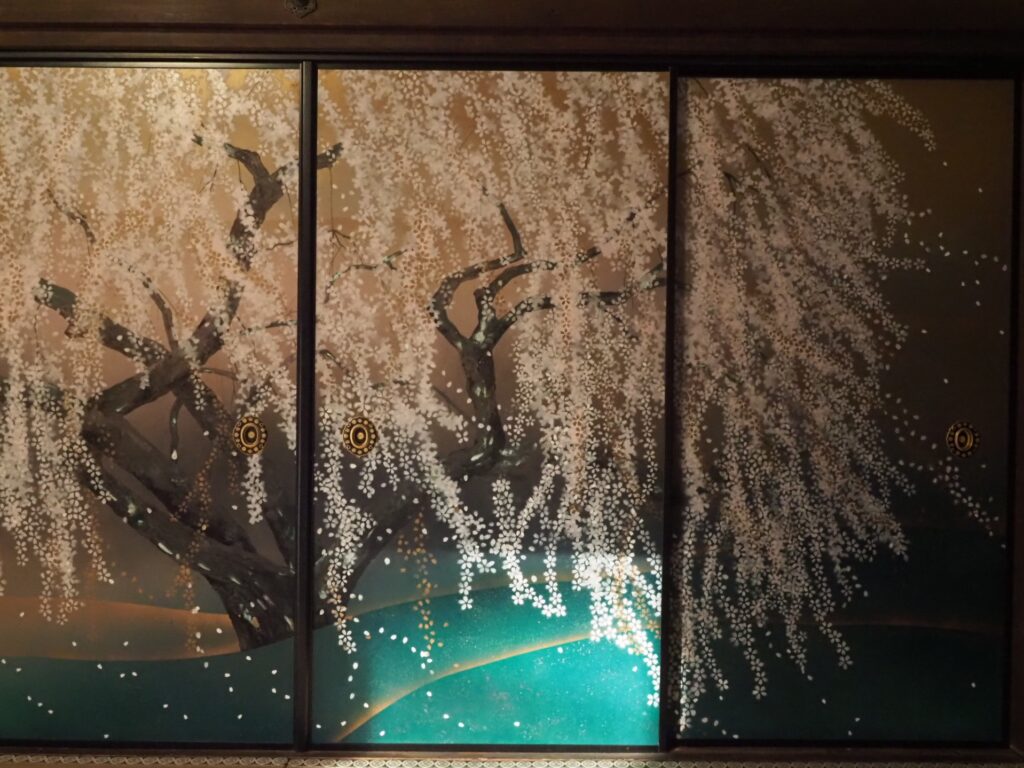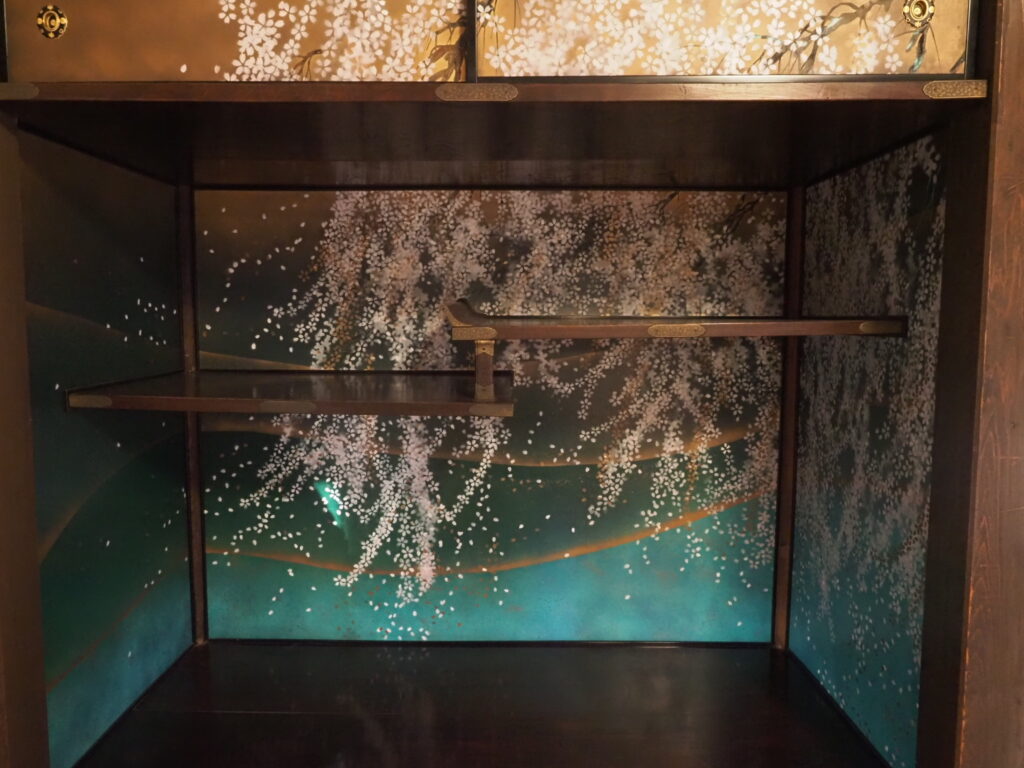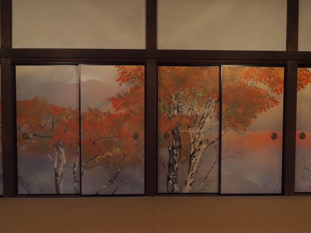 内部の襖絵は、平成に入ってから日本画家・浜田泰介画伯によって桜や紅葉の図が描かれ、建物の歴史的な雰囲気と調和しています。