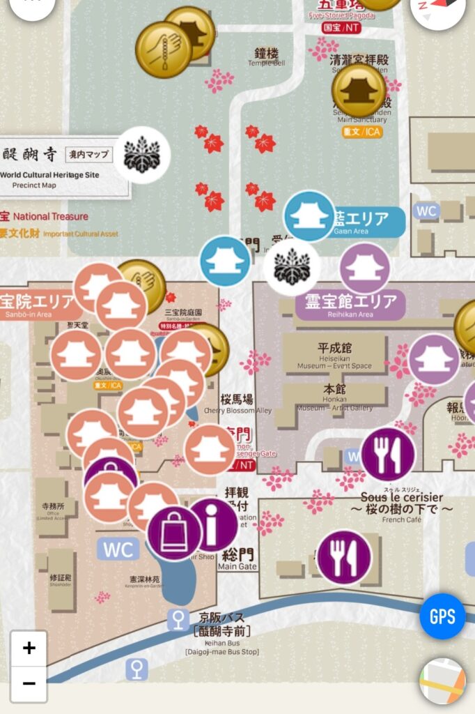 500円かかりますが、三宝院御前は、醍醐寺に来たら立ち寄る価値があります。そこから見下ろす庭は見応えがありますよ。