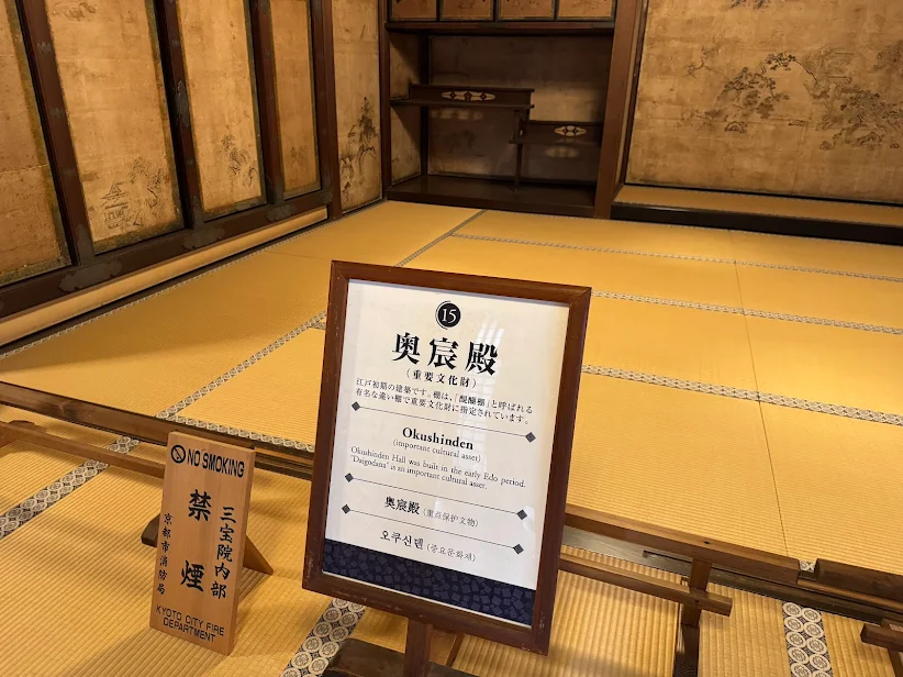 奥宸殿: 江戸時代初期の建築で、「修学院離宮の霞棚」「桂離宮の桂棚」とともに「天下の三名棚」と呼ばれる「醍醐棚」があります。