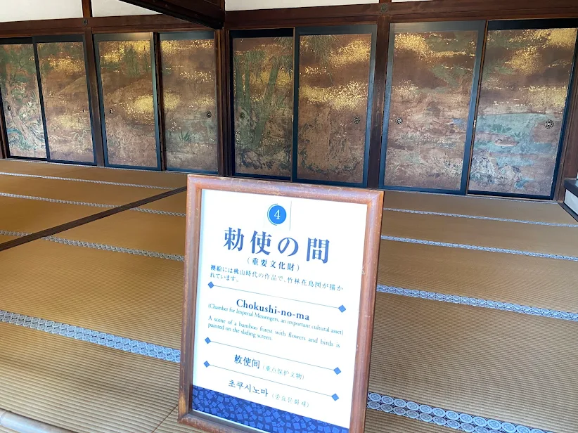 葵の間・草の間・勅使の間: これらの部屋は重要文化財に指定されており、長谷川等伯一派による豪華な襖絵(ふすまえ)で飾られています。
